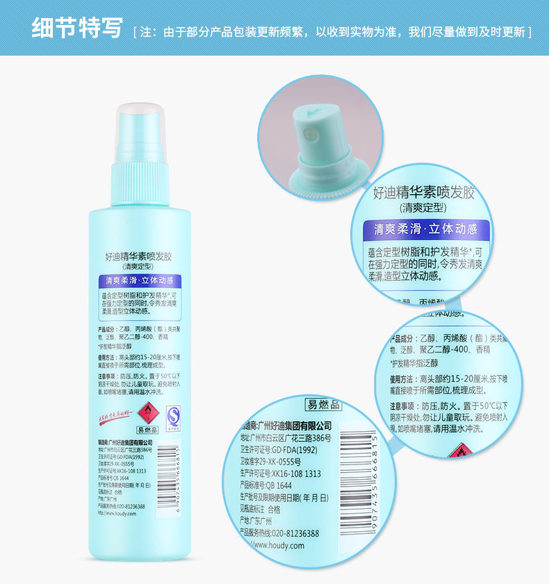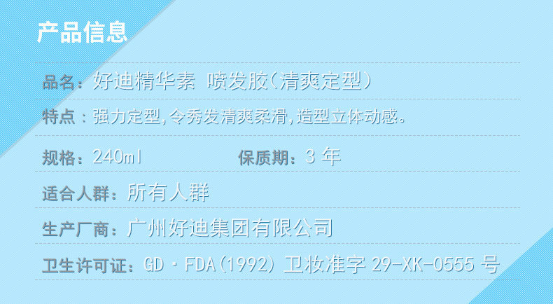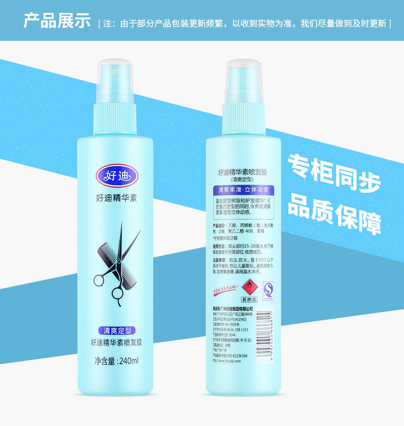 好迪 Эссенция, освежающий лак для волос, мощные освежающие пряди волос, 240 мл, стайлинг