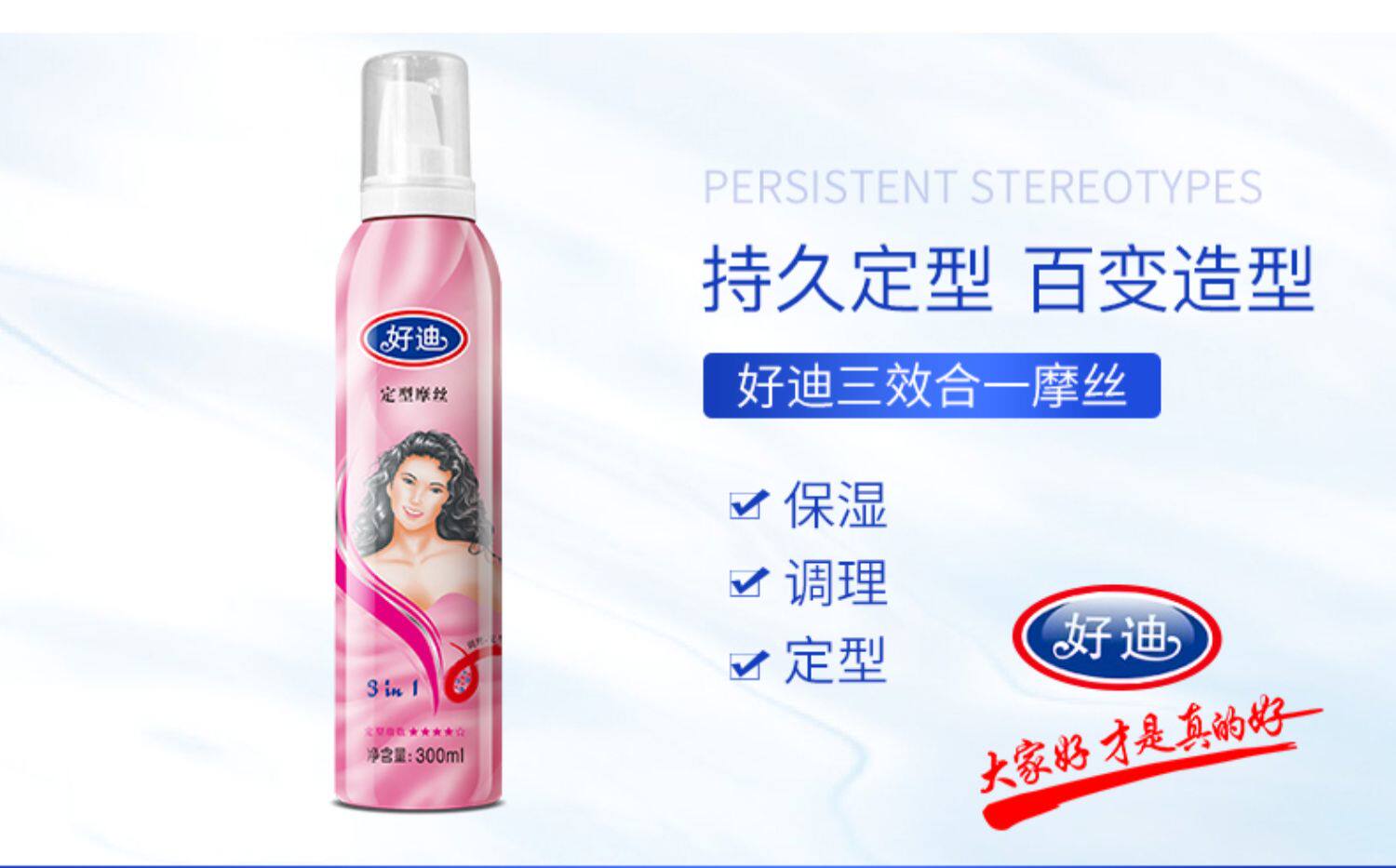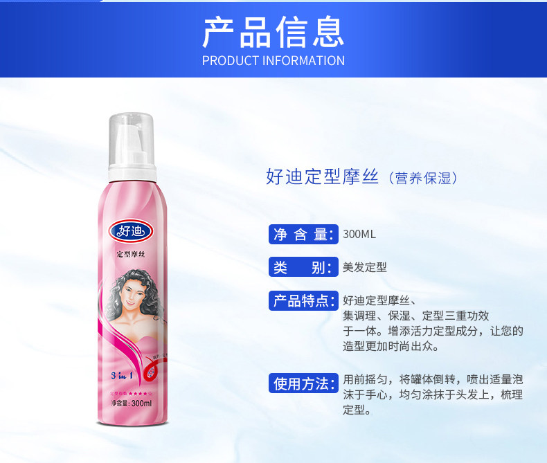 好迪 Мощный увлажняющий мусс, спрей, лак для волос, долговременный эффект, стайлинг, придает объем