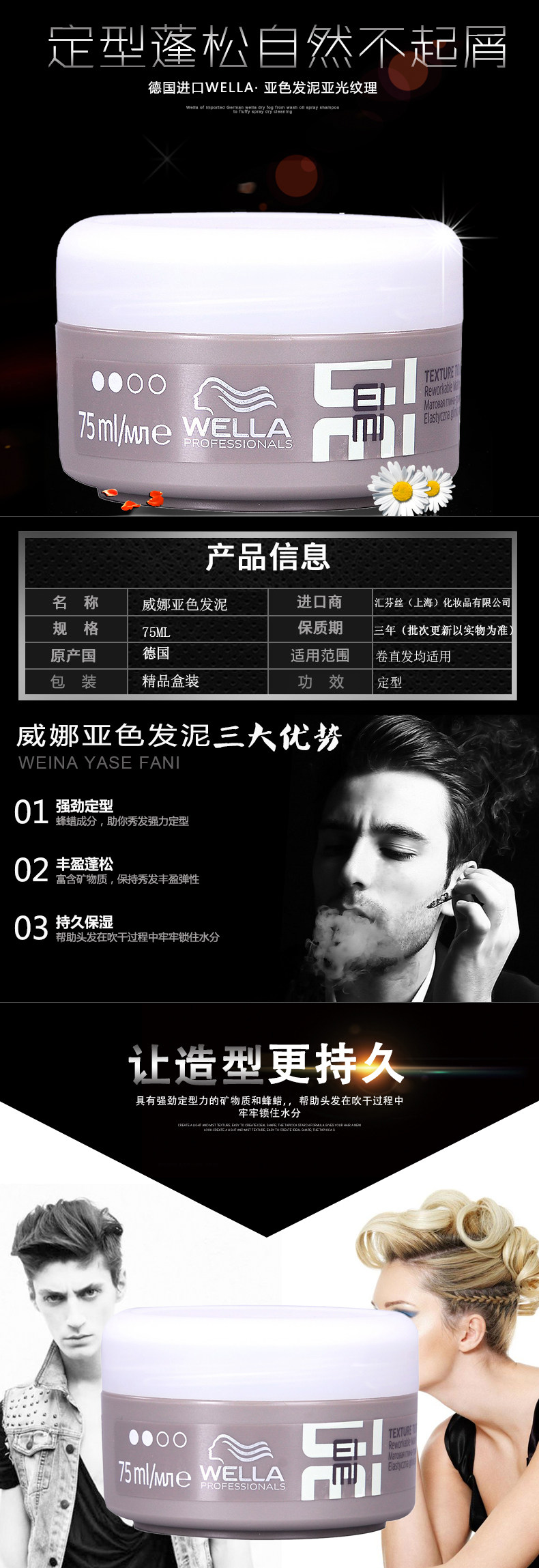 Импортированный Wella Wella Eimi Sub -Color Hair Mud Mud 75ml*1 Sub -Plight Pattern, определенный пушистый, естественно презрение
