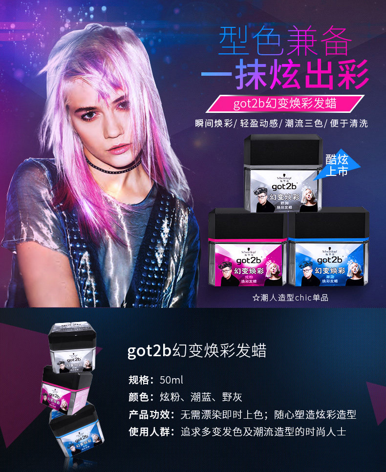 Schwarzkopf, воск, смывающаяся безвредная краска для волос, стайлинг, не повреждает волосы, 50г