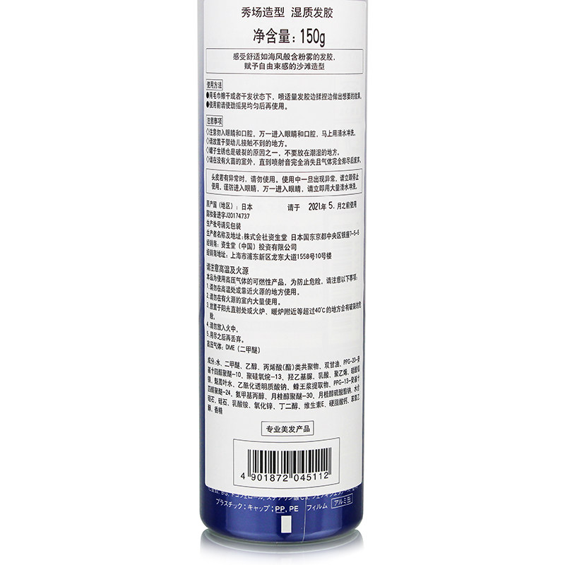 Shiseido, импортный лак для волос, увлажняющий кудрявый спрей, 150г, придает объем, свободный крой