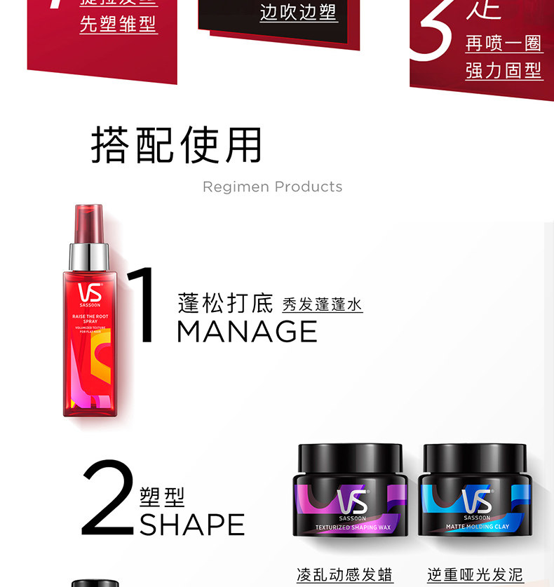 VS Sassoon Hair -Clue -Type Spray Spray Men's Men's Dry Gel Aragrance Hairstyle Broken Hair Cleange Non -Gel Water 3 бутылки