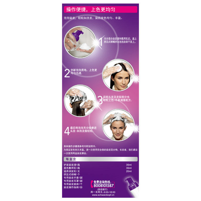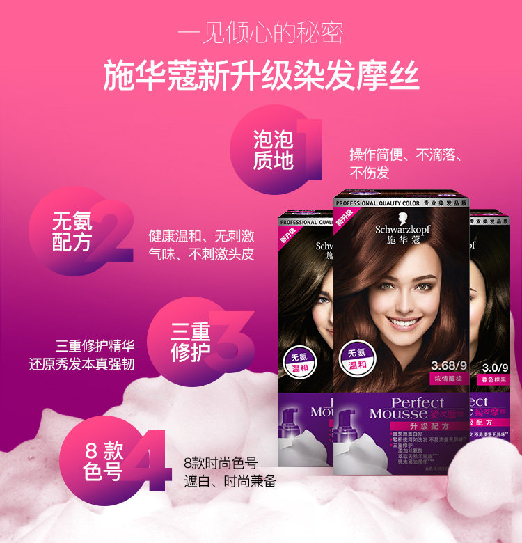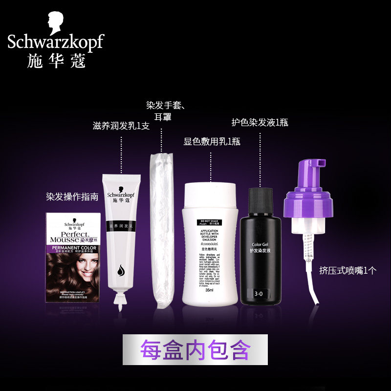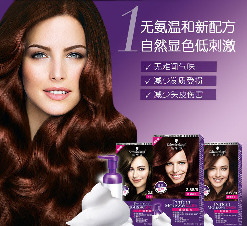 Schwarzkopf, мусс, краска для волос, красный (черный) чай подходит для седых волос