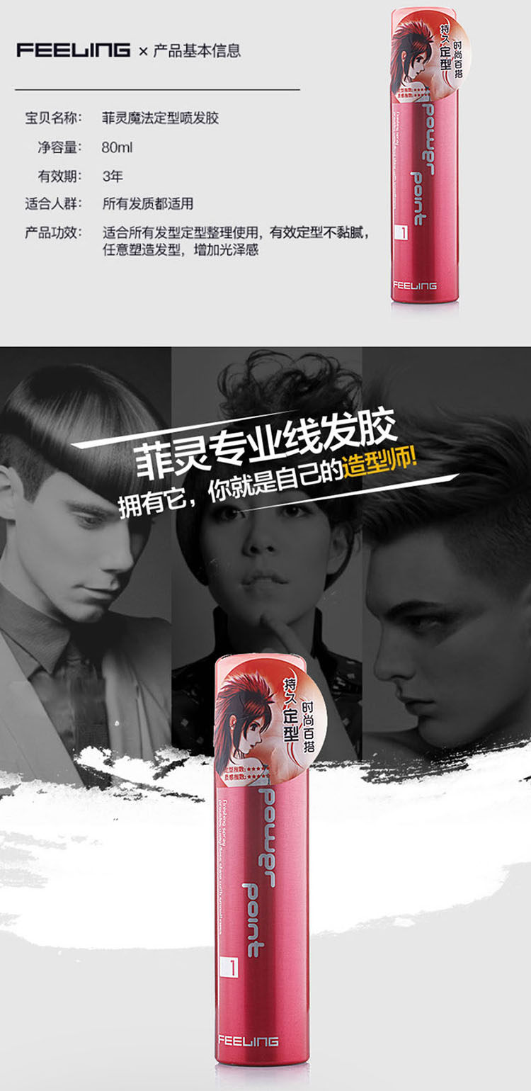 菲灵 Волшебный мощный лак для волос, спрей подходит для мужчин и женщин, комплект для путешествий, долговременный эффект, 80 мл, придает объем