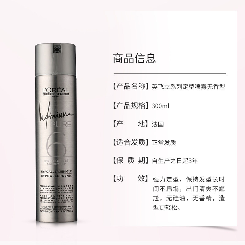 L'Oreal, ароматный мощный лак для волос без запаха, Франция, стайлинг