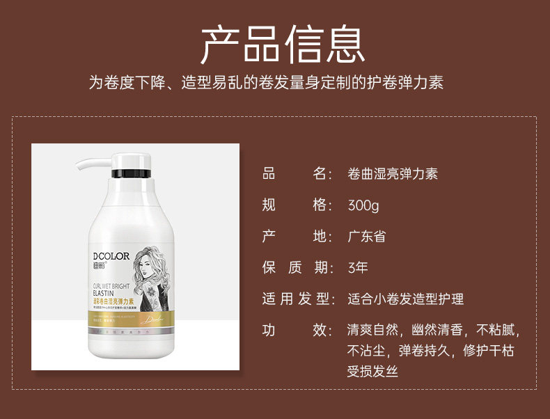 迪彩 Эластичная кудрявая увлажняющая эссенция подходит для вьющихся волос, стайлинг, долговременный эффект, предотвращение ломкости волос, 300г