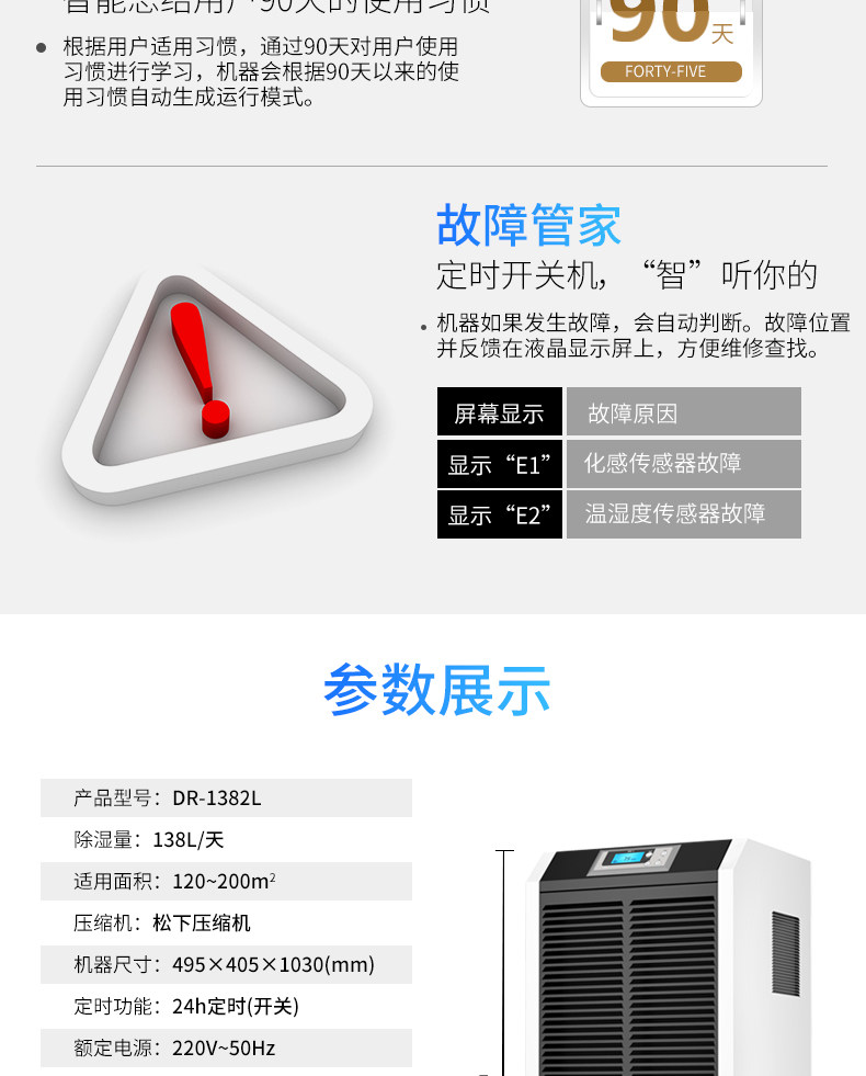 Дерксин осушитель DR-1382L Смачивающая машина мощный промышленный осушитель.