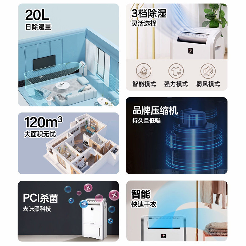 [Субсидия до 15%] Осушитель Sharp бытовой d20hz для спальни, свет, звук, сушка, осушитель, очистка