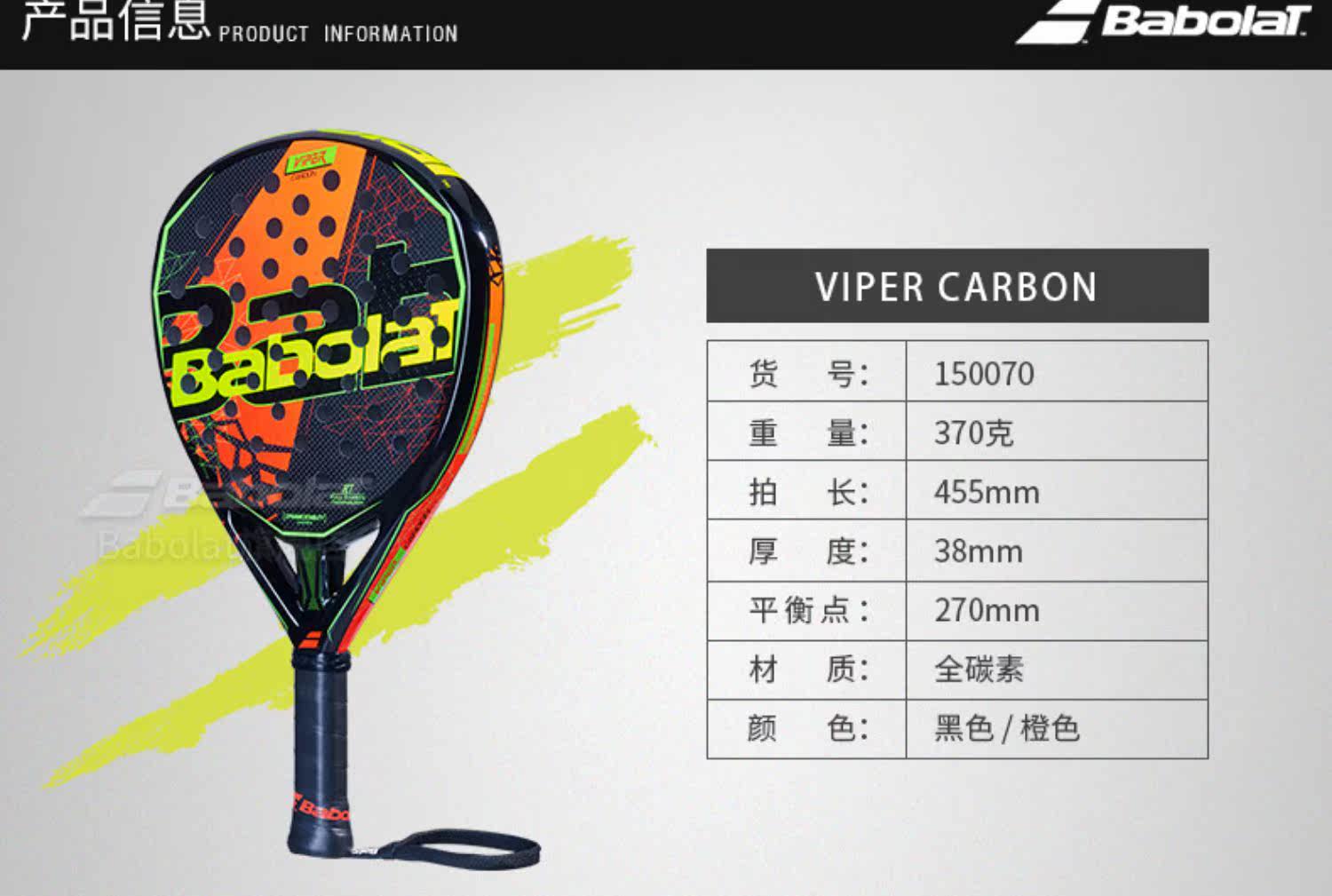 Babolat Baibaoli Official All -Carbon Professional Series Plate Tennis Racket Padel Viper Carbon