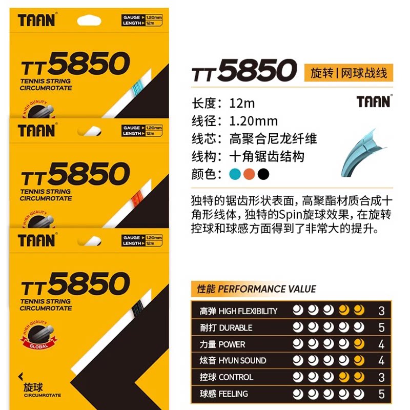 TAAN TAIANG TT5850 Теннисная линия Большая тарелка RACKET RATARY RACTARY CONTROL Десять краевая полиэфирная линия жесткой линии Теннисной линии
