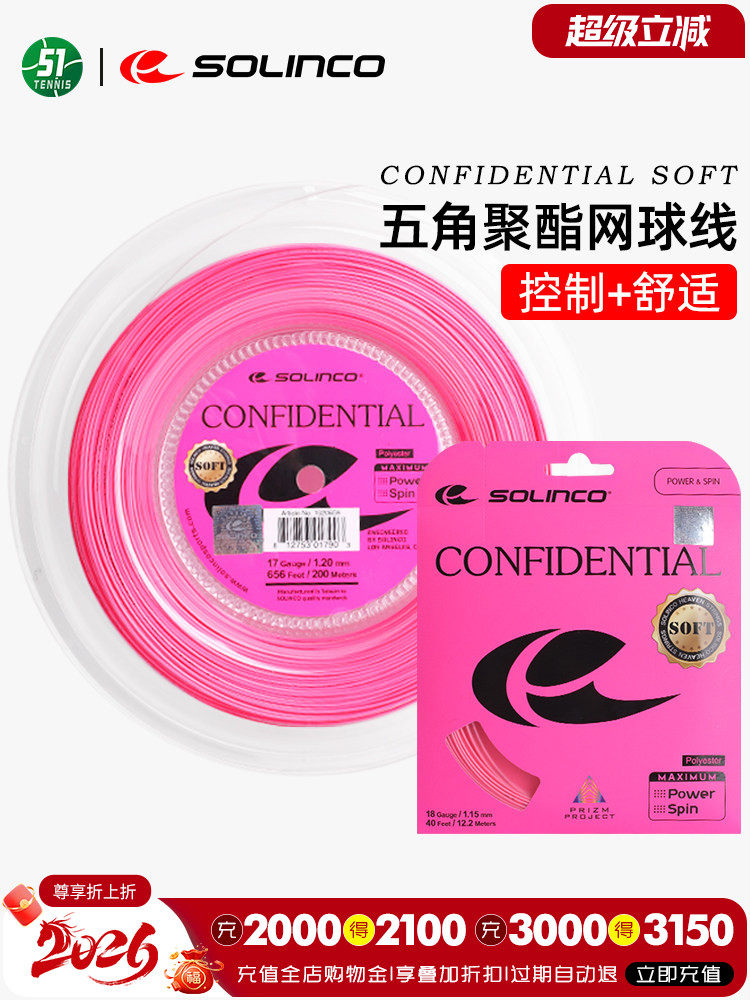 Solinco Solinco Confidential Мягкая теннисная струна, розовая пятиугольная твердая струна из полиэстера, устойчивая к вращению