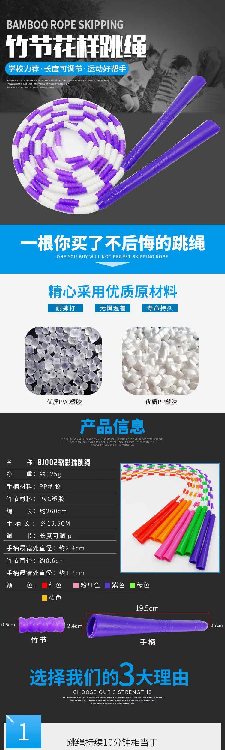 Детская бамбуковая пластиковая скакалка для школьников для детского сада