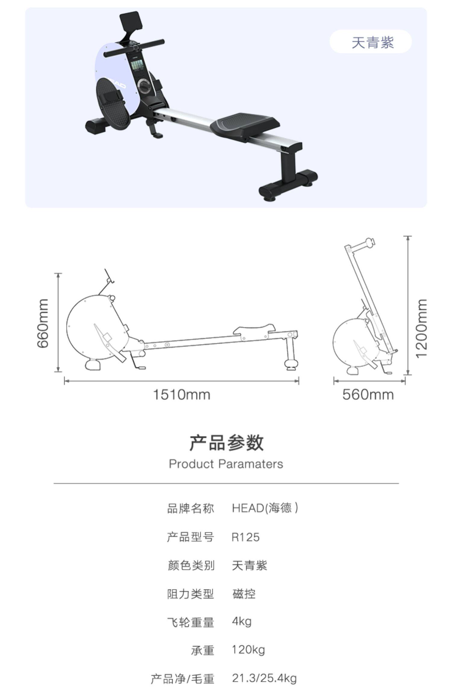 - R125 Машина гребля корабля | Установка пакета | Магнитная система управления | Авиационный алюминиевый сплав рельс | Smart App | 4KG маховик