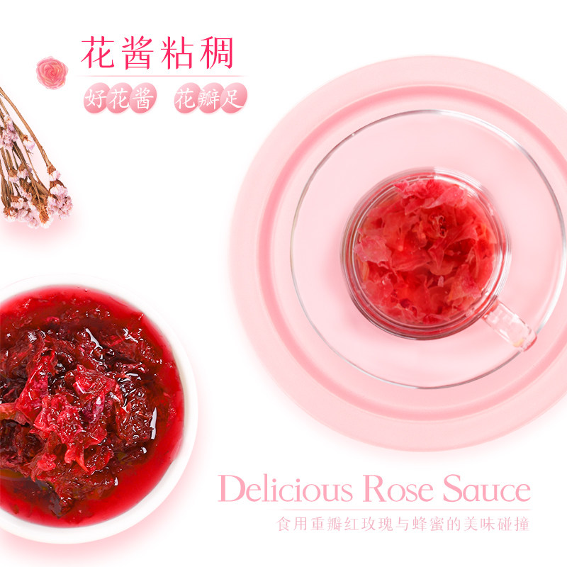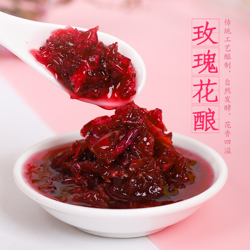 Юньнань розовый соус бутылка -загруженная розовым соусом ледовочный порошок ингредиенты съедобный розовый сахар выпекать медовый цветок для приготовления чая