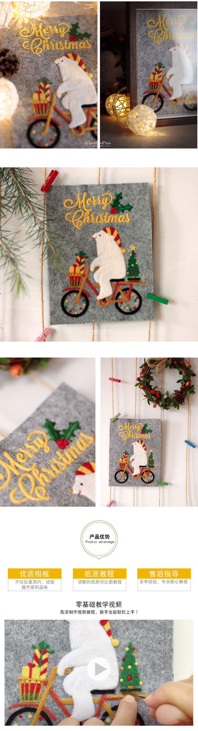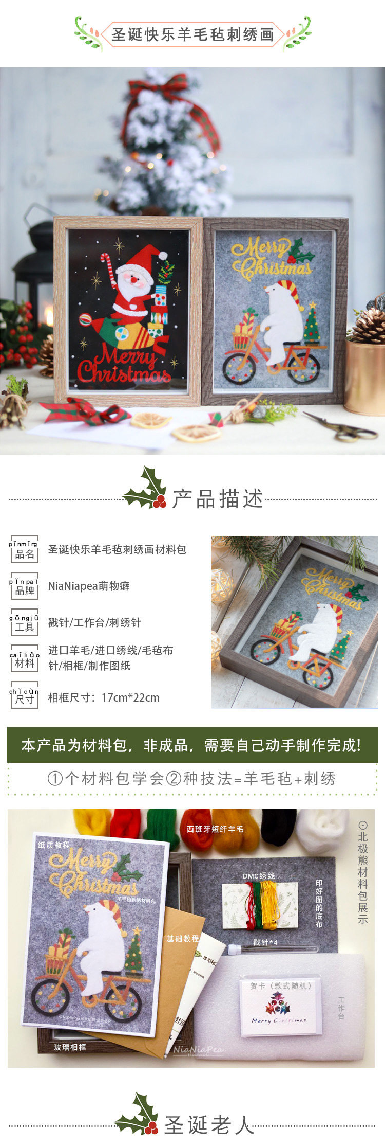 Шерстяной войлок, рождественский набор материалов, фоторамка, DIY, с вышивкой, рождественский подарок, подарок на день рождения