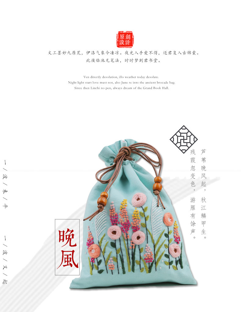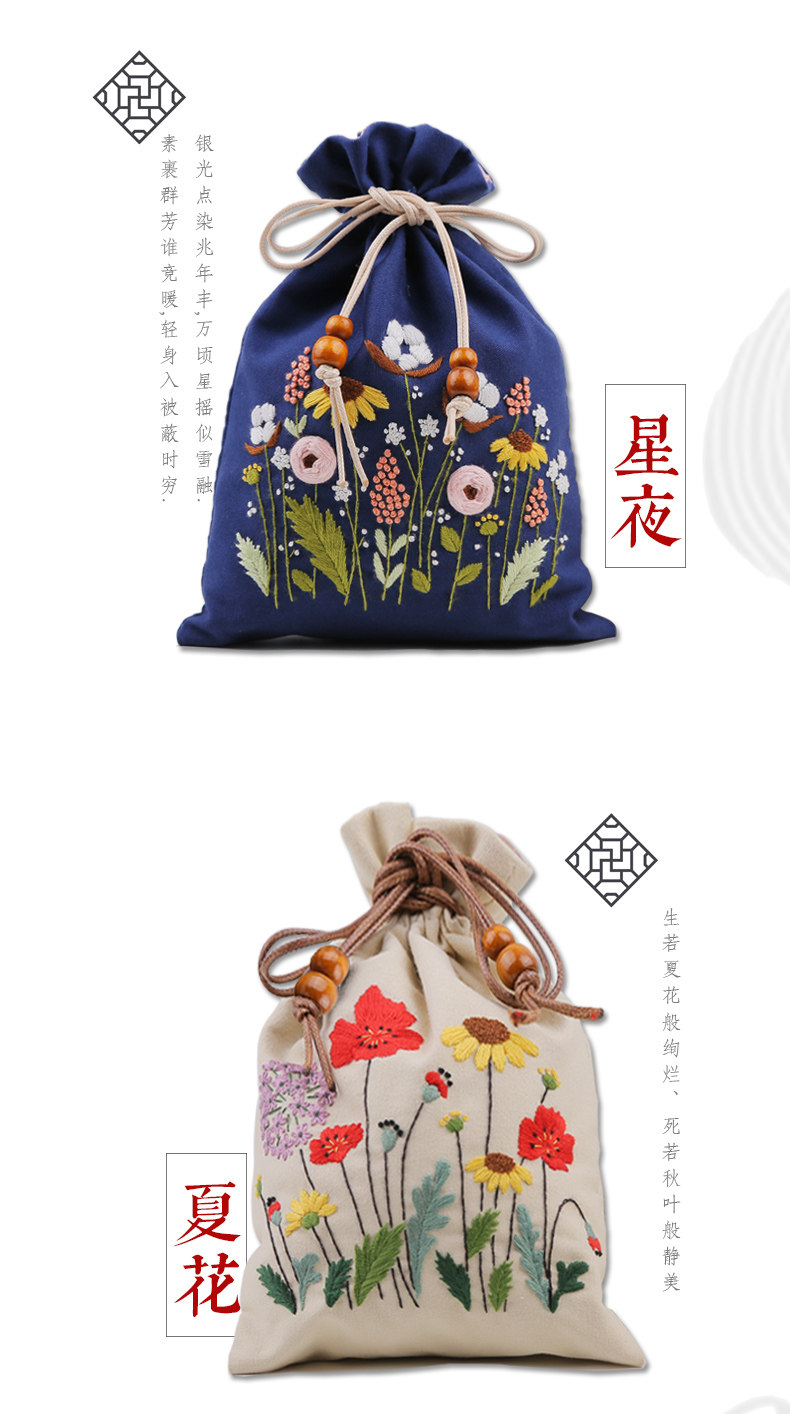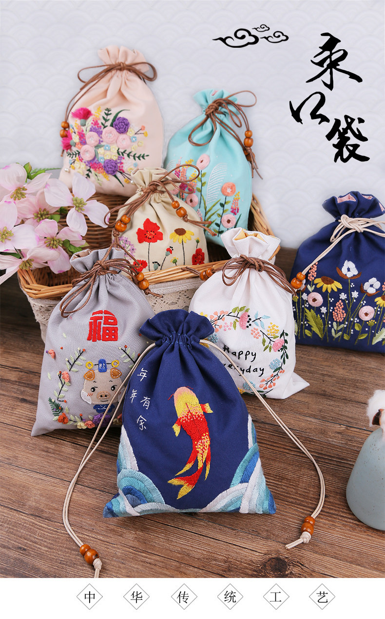 Набор материалов, мешочек, портативная ручка, кошелек, сумка-органайзер, DIY, с вышивкой, на шнурках