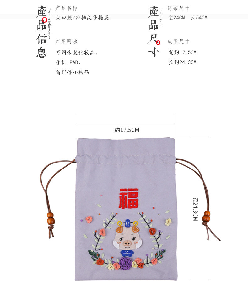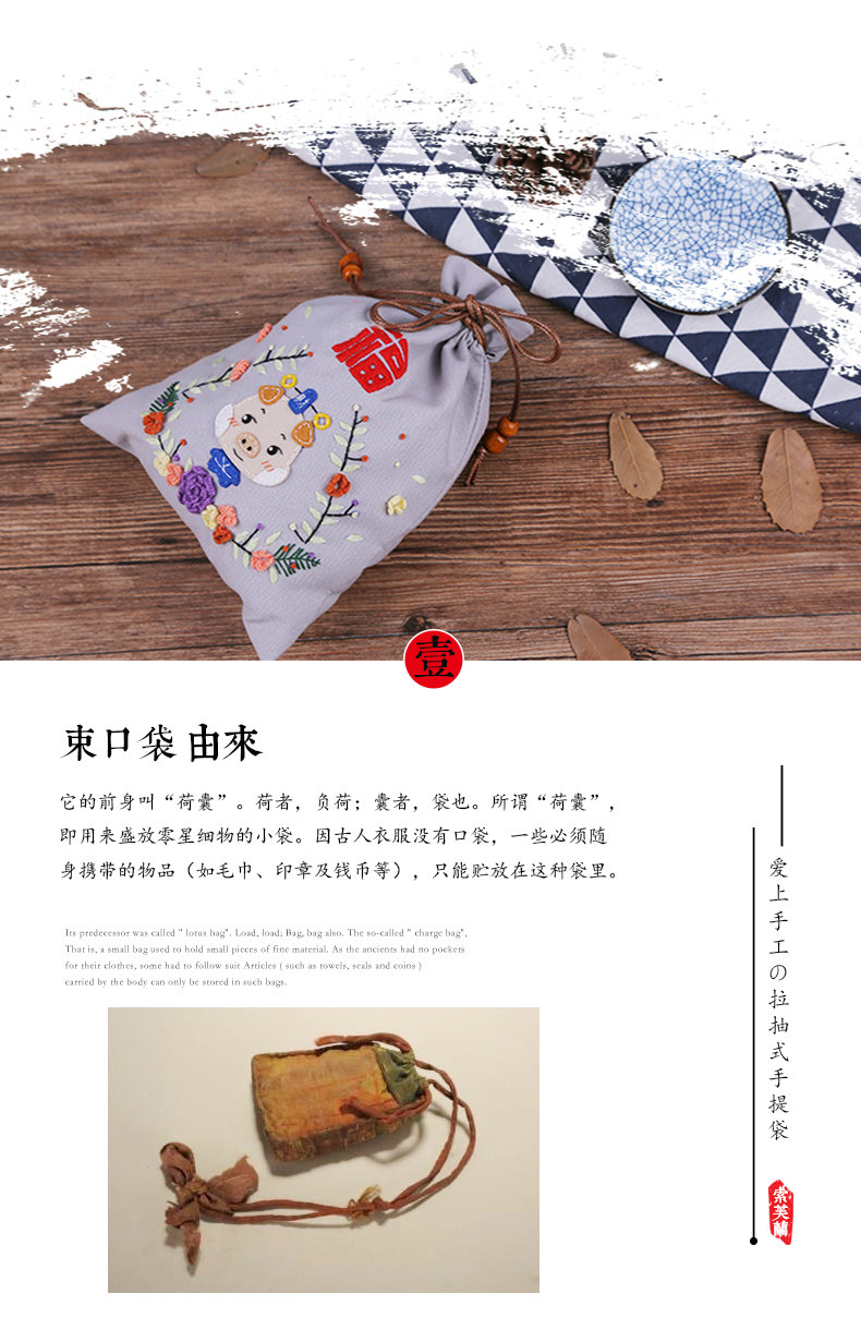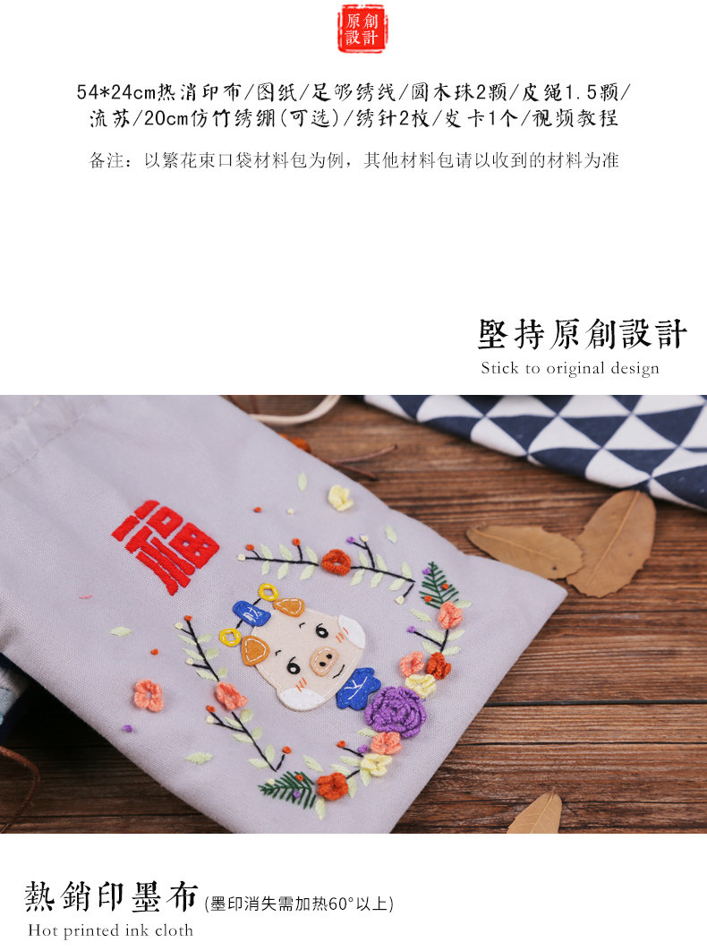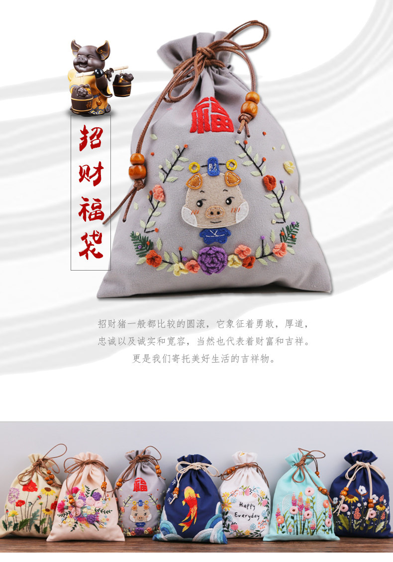 Набор материалов, мешочек, портативная ручка, кошелек, сумка-органайзер, DIY, с вышивкой, на шнурках