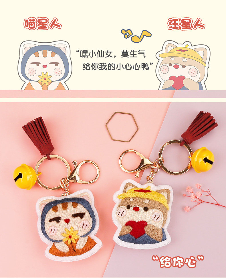 Креативный защитный амулет для влюбленных ручной работы, подвеска, мультяшный брелок, набор материалов, с вышивкой, DIY, креативный подарок
