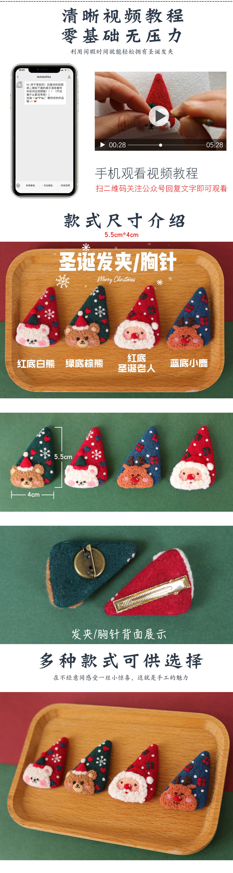 Шерстяной войлок, заколка для волос для пожилых людей, брошь, аксессуар для волос ручной работы, набор материалов, DIY, подарок на день рождения
