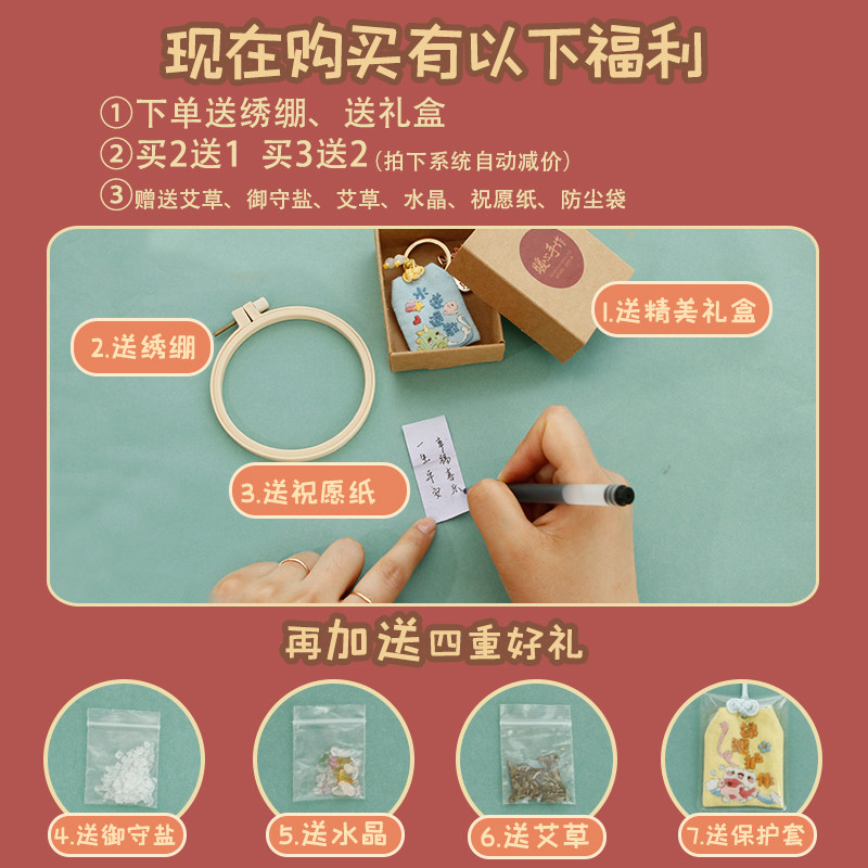 Защитный амулет ручной работы, набор материалов, мультяшный мешочек, картхолдер для друга, с вышивкой, DIY