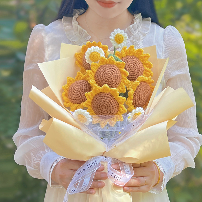 Плетеный набор материалов ручной работы, реалистичный крючок для вязания, с вышивкой, DIY, подсолнух, подарок на день рождения, букет