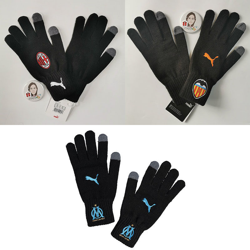 Теплые флисовые перчатки ФК «Милан», «Валенсия» и «Марсель», с функцией сенсорного экрана на кончиках большого и указательного пальцев, с эмблемой команды и логотипом Puma, производства Puma, официальные и аутентичные.