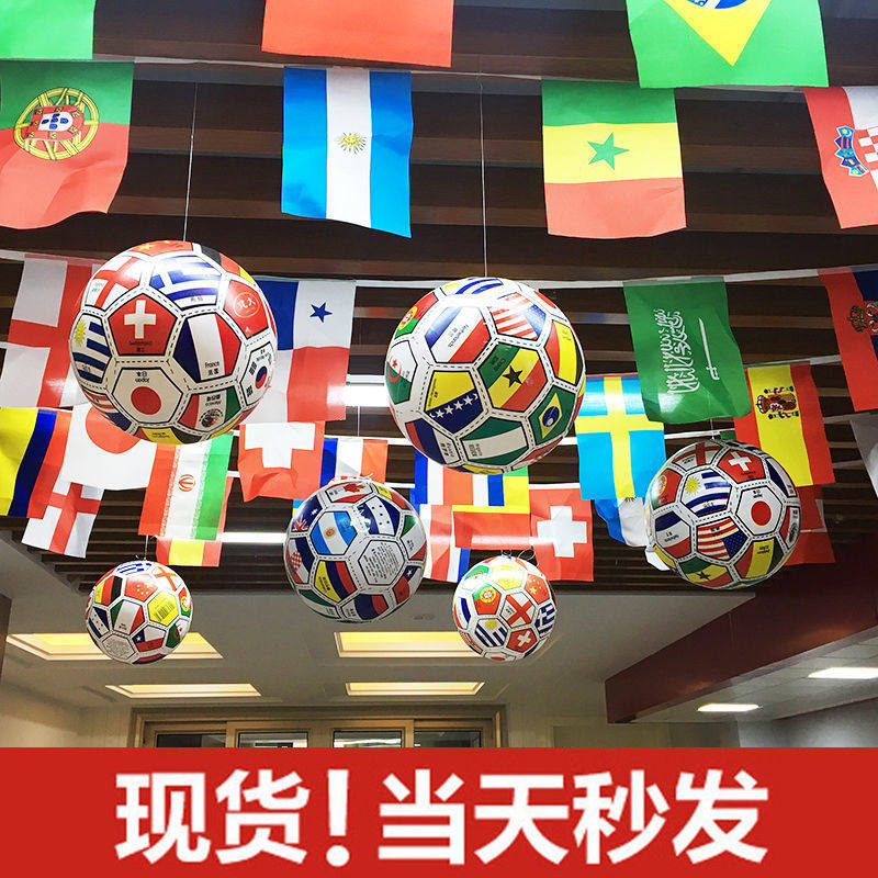 Футбольные украшения чемпионата мира, мяч с флагом магазина спортивной лотереи, веревка с флагом, окно бара, мяч для оформления атмосферы гостиной
