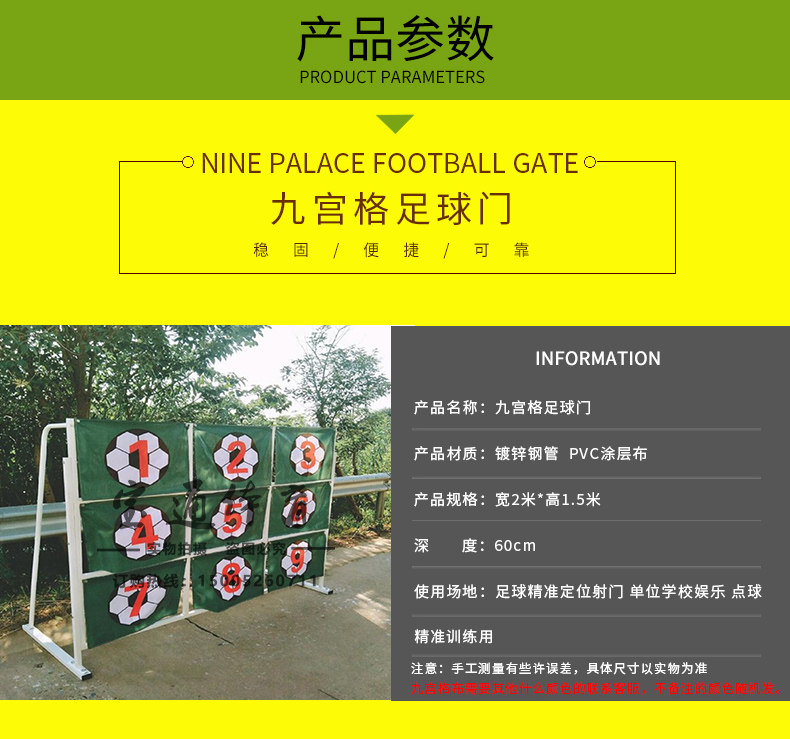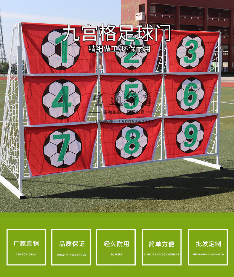 Параметры спецификации: 3M*2M Jiugongge Football Гол, подходящий для четырех или более людей, чтобы использовать футбольный гол Jiugongge, рекомендовать футбол № 5