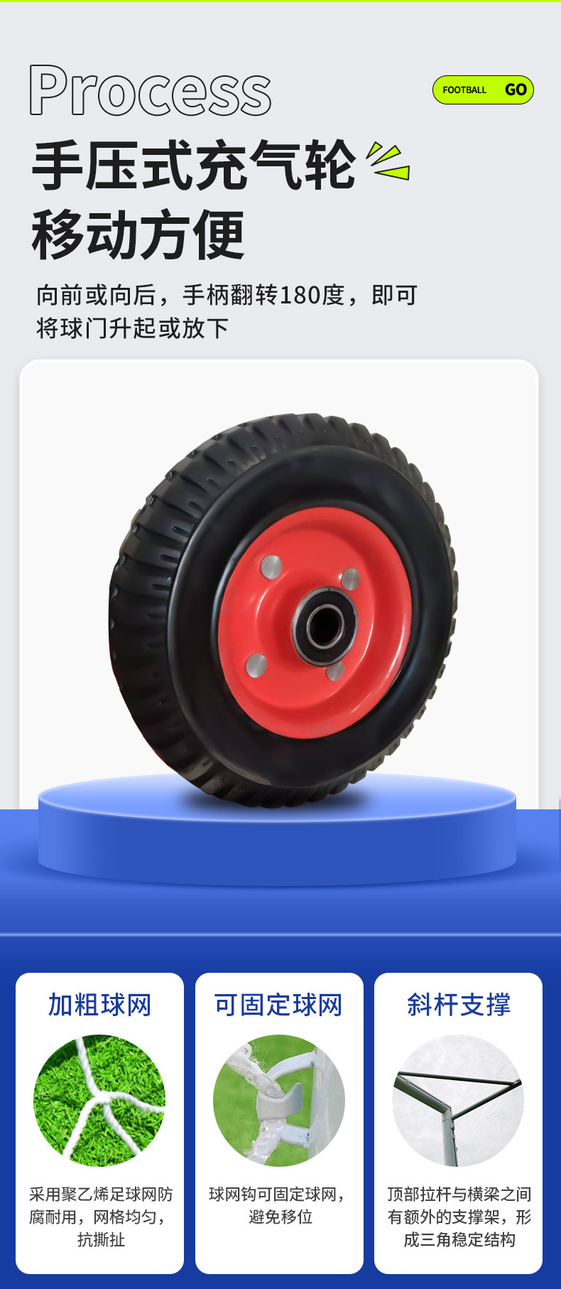 Стандартное колесо поясное колесо пять -член мобильного футбола гол детского дома портативная открытая тренировка на открытом воздухе рамка для футбольных ворот