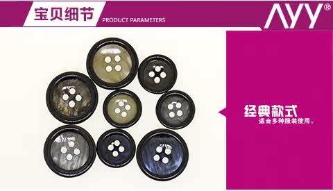 AYY Пуговица Новая четырехнодированная тонкая -сплошная жемчужная пряжка для пиджаки