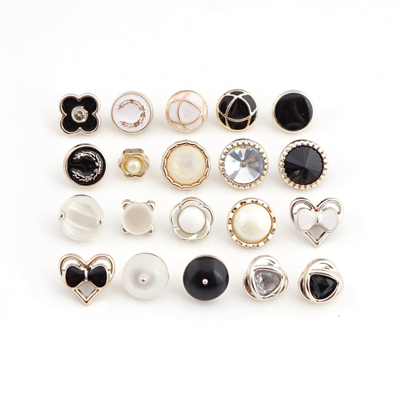 Женская рубашка для пряжки для девочки охлажденные вращающиеся жемчужные кнопки кардигана, золотой черно -белый точечный декорек