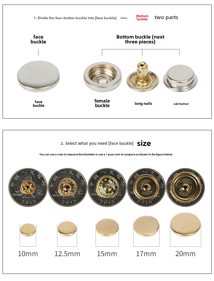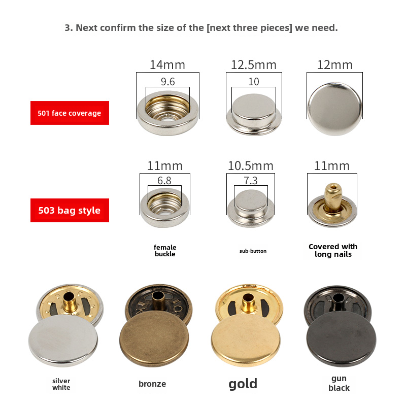 Кнопка стеганого одеяла Круглый плоский металлический 501 Четырехнологический набор свекровь.