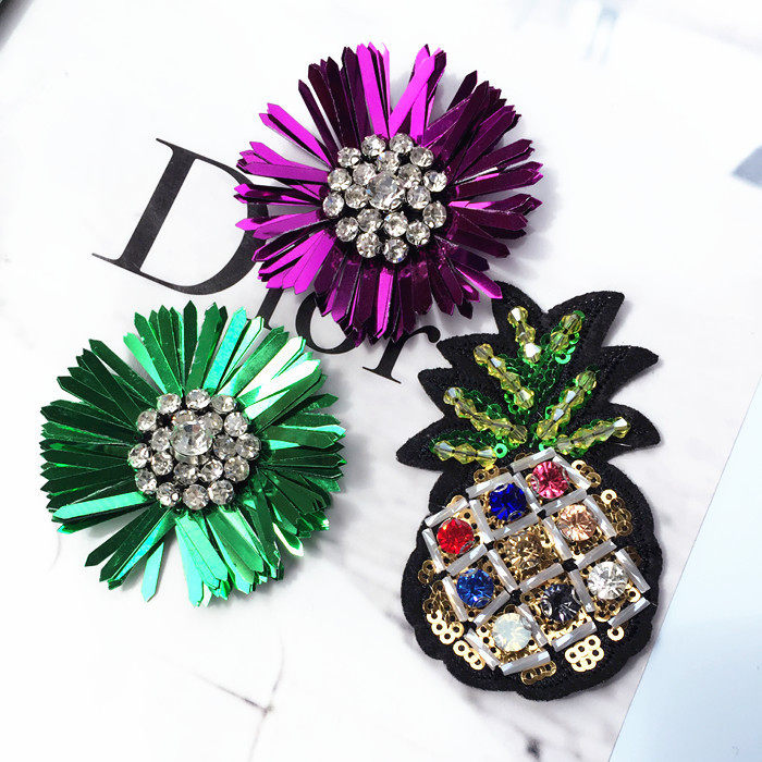 Модная персонализированная обувь и шляпы, украшенные блестками и бусинами, ананасовым фиолетовым цветком, украшение одежды, аксессуары из страз своими руками