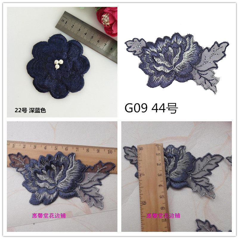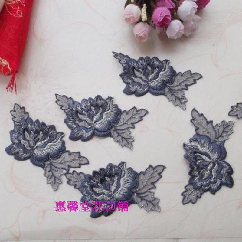 20 Высококачественные голубые розовые цветы изысканная вышивка ручной работы ручной работы