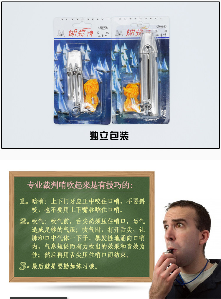 Баскетбольный профессиональный металлический свисток с бабочкой