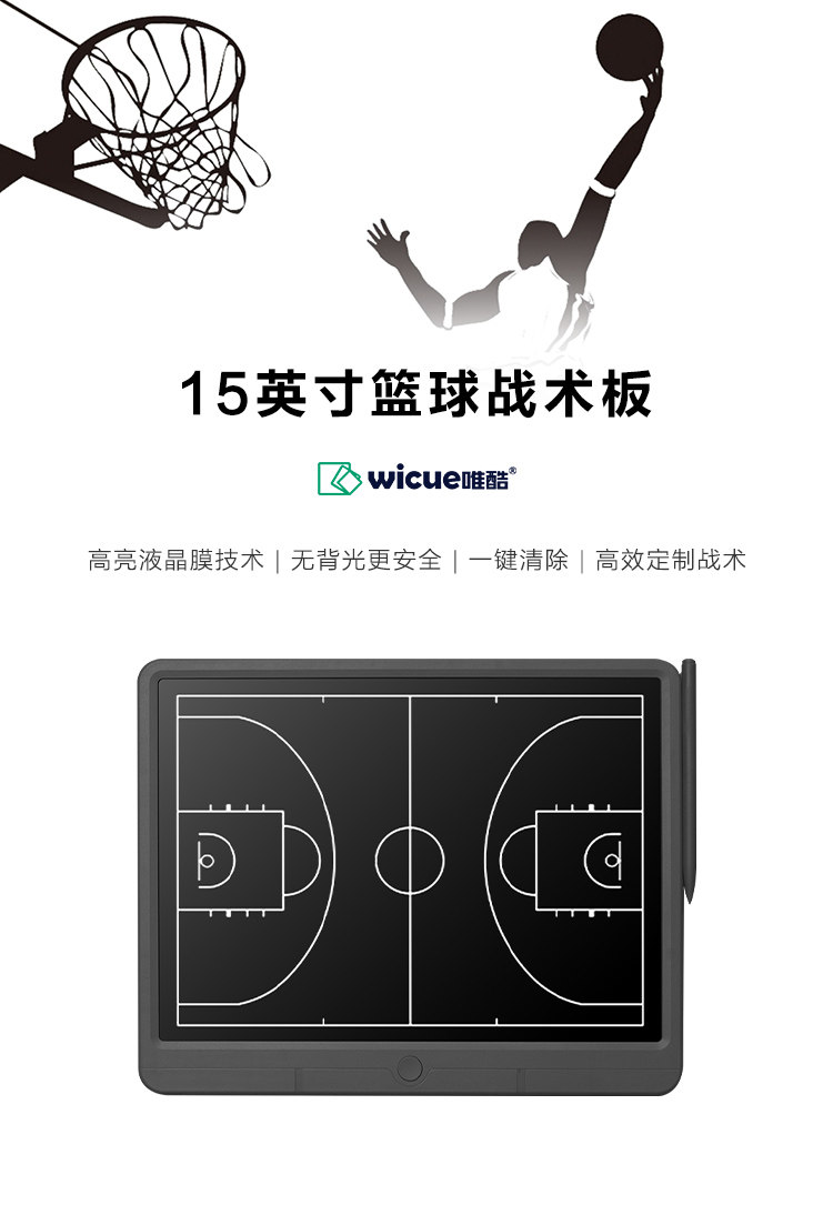 Wicue Wei Cool 15 -INCH Портативный учитель баскетбола Электронная тактическая доска обучение пять человек преподавания людей