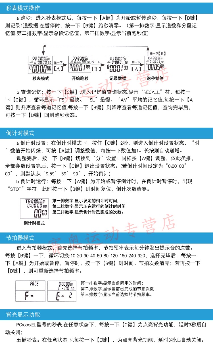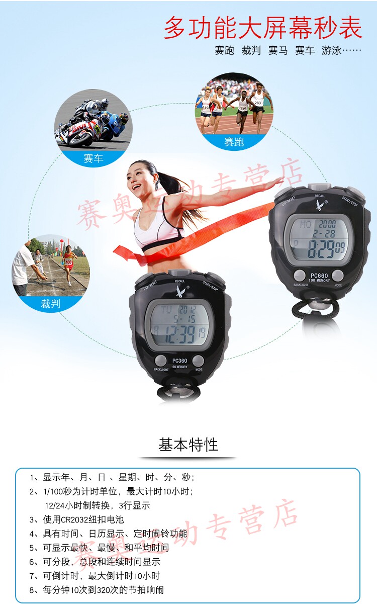 PC360 Три ряда из 60 памяти секундомер Электронный хронограф PC660 (EL) Три ряда из 100 подсветки планеты