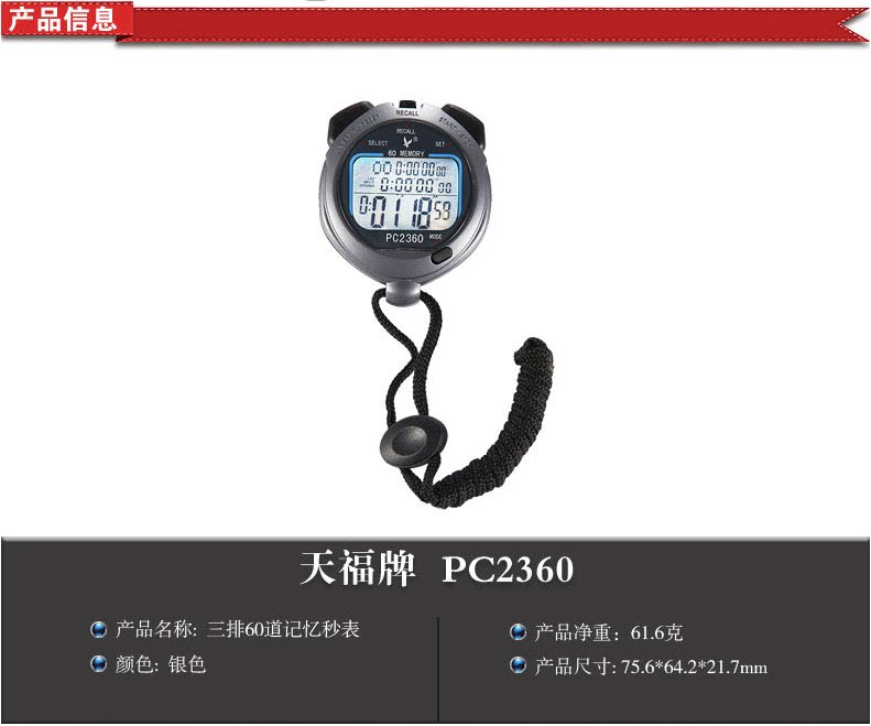 Tianfu PC2360 Три ряда из 60 секунд смотрите хронограф Электронный секундомер спортивный соревнование по легкой атлетике
