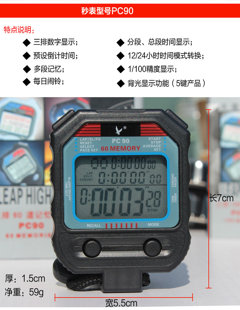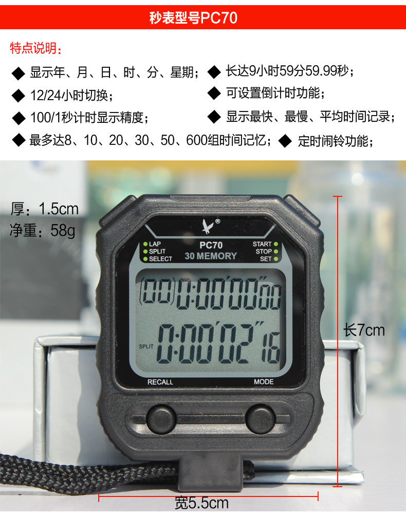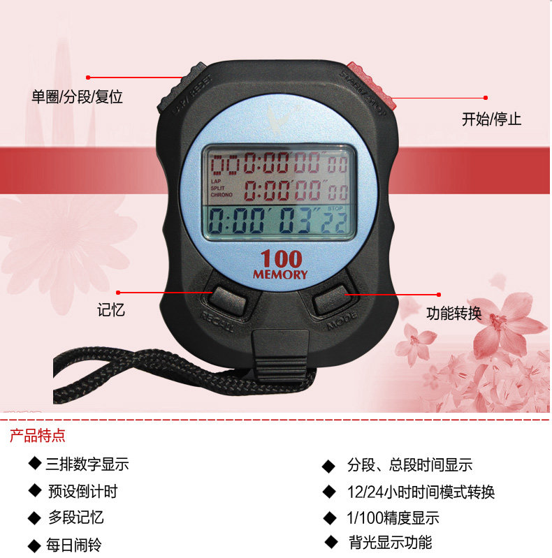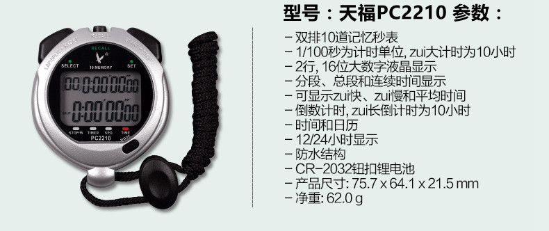 Электронный универсальный двухрядный секундомер, таймер