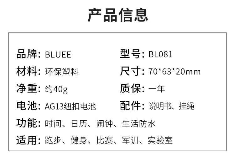 Bluee Electronic Sprotwatch Track and Mobilization Chronograph Coach Speciale Special Code Watch Sports Fitness Student/081