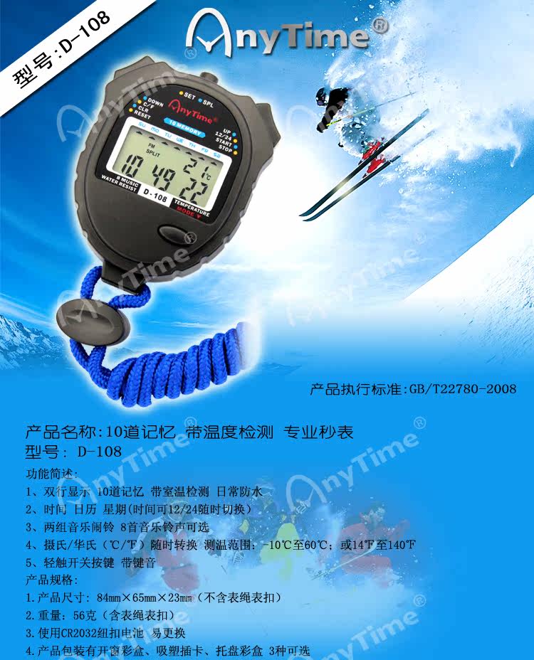 Многочисленные воспоминания; после запуска секундомера нажмите кнопку вниз один раз, количество памяти плюс 1; в то же время, разделенный символ зажжен.