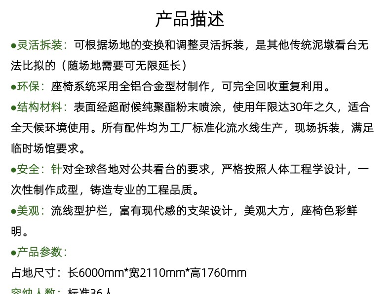 Полностью мобильные кресла для трибун, изготовленные по индивидуальному заказу, которые можно расширять до бесконечности в соответствии с потребностями объекта, а также разбирать и собирать во временные площадки и спортивные площадки.
