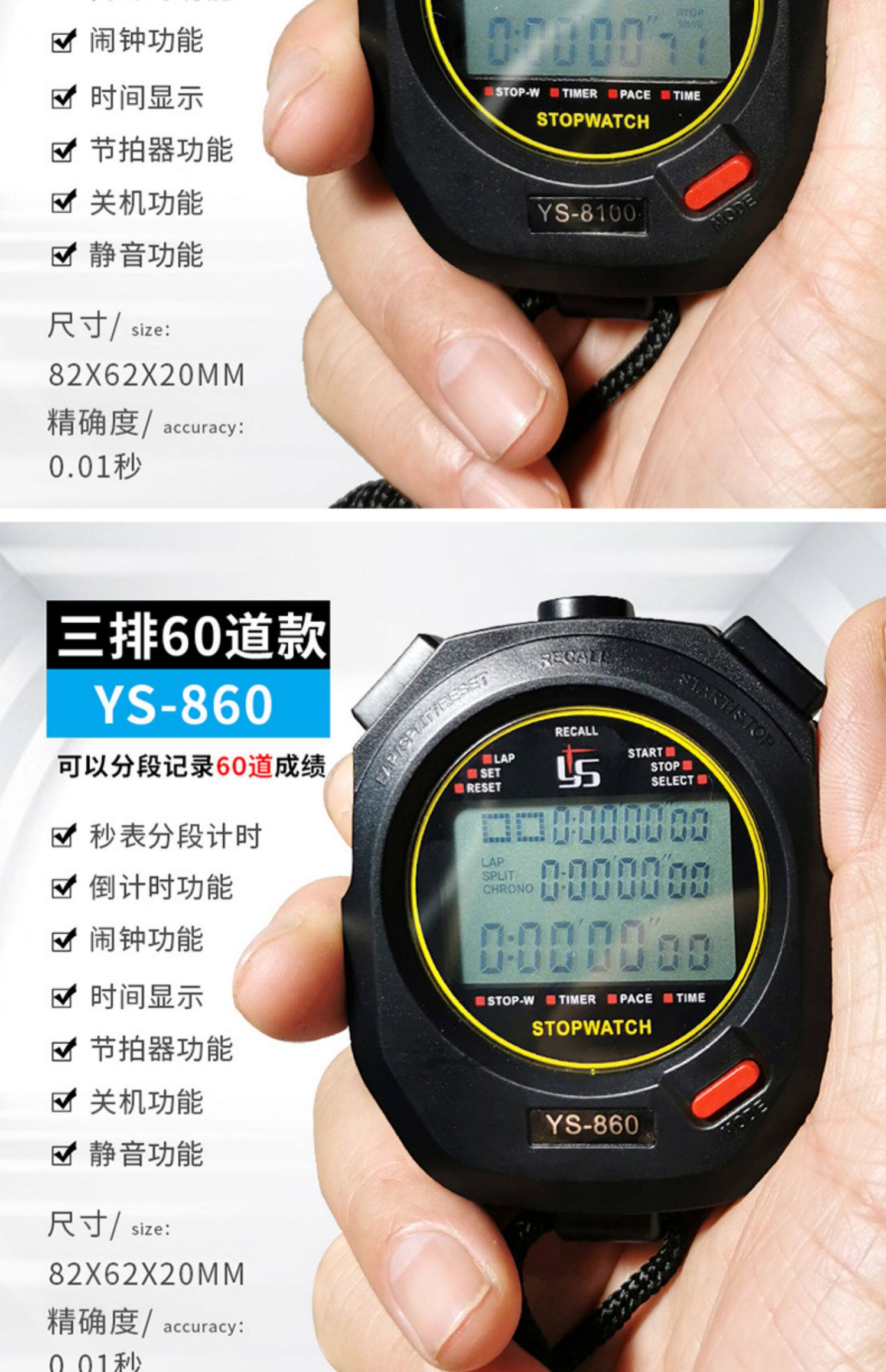 | Цвет: | Один -секундомер (синяя модель), Один строк (черная модель) секундомер, Один строк (красная модель) секундомер, Один -секундомер (оранжевая модель), Два ряда 10 (черный XL-026N) Spike, Три ряда из 30 (черная модель YS-830) секундомер, Три ряда из 60 (черная модель YS-860) секундомер, Три ряда из 100 (черная модель YS-8100) вторые часы, Три ряда 120 (черная модель YS-8120) секундомер), Три ряда из 200 (черная модель YS-2002) секундомер, Три ряда из 100-й секунды (белый YS-8100)., Три ряда 120 полос (белый YS-8120). |