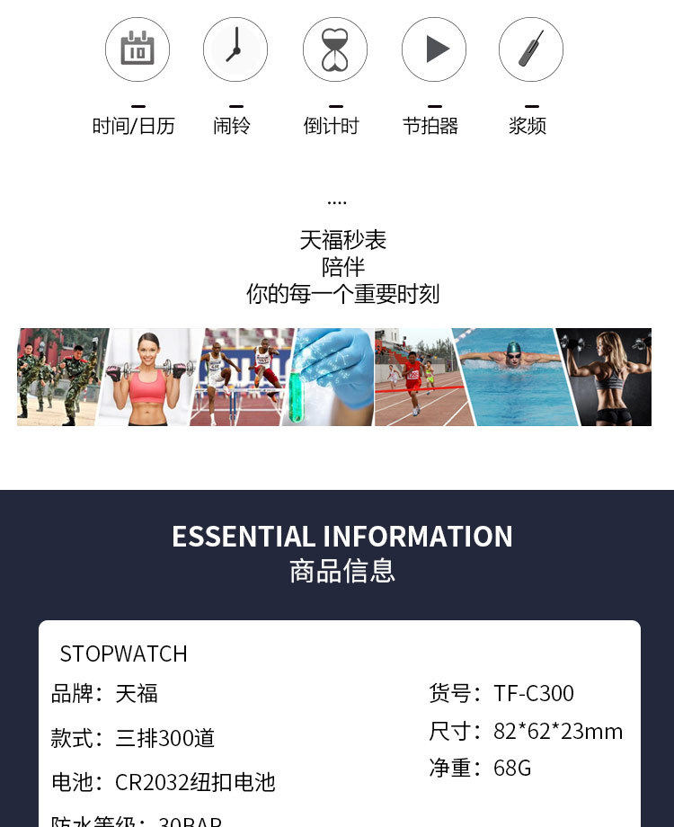 Подлинный соревнование Tianfu Second Watch Termer Special Rowning Professional Sports Specker Pass Comtelless 300 TF-C300