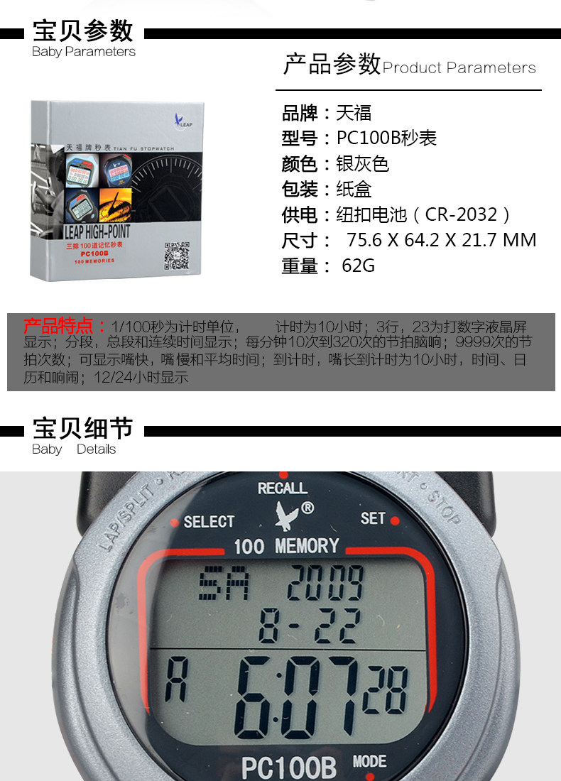 SPI WATCH TIMER TIANFU PC100B Соревнование за 100 трех рядов трех рядов электрического легкого атлета