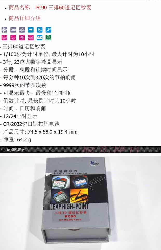 Tianfu Second Watch PC90 Три ряда из 60 электронных спортивных терминалов подсчитывают обратный отсчет