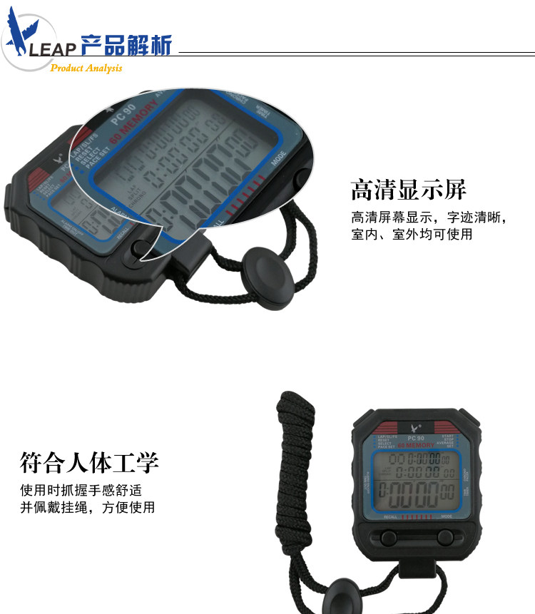 Tianfu Second Watch PC90 Три ряда из 60 терминальных хвоста, профессиональное движение по легкой атлетике судья Таймер