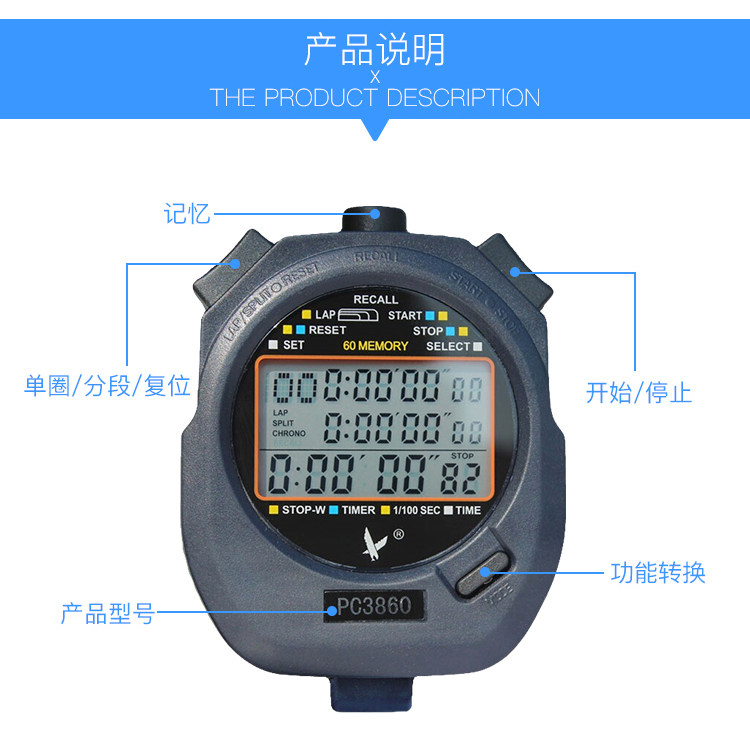 Tianfu Second Watch New PC3860 Три ряда из 60 WCK Withfathers могут открыть и закрывать громкий атлет -спортивный фитнес -хронограф