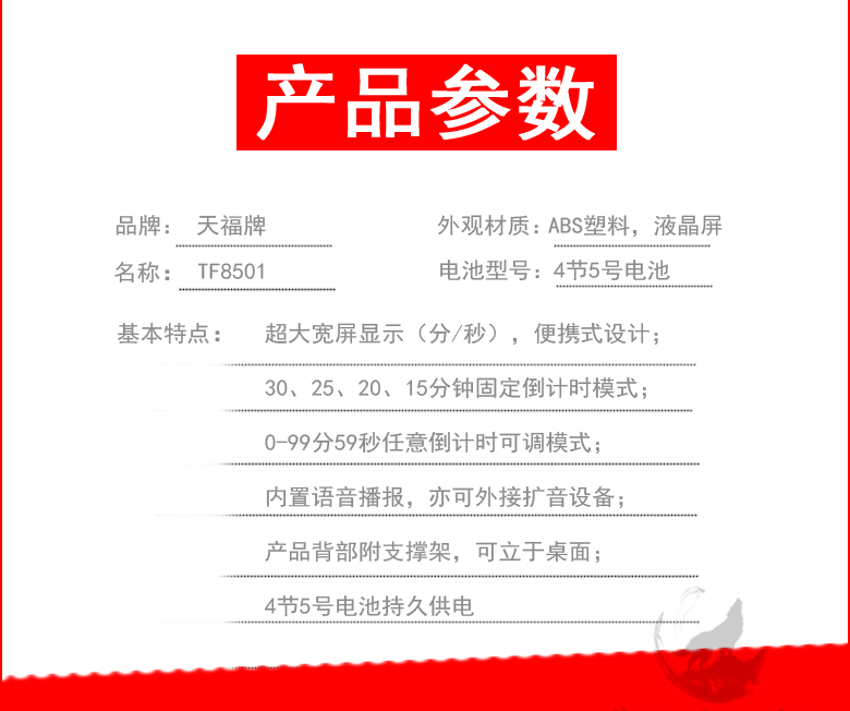 Tianfu Brand TF8501 Голосовой вратарь часы/хронограф Kugen Speed Speed Professional Block Block Big Screen