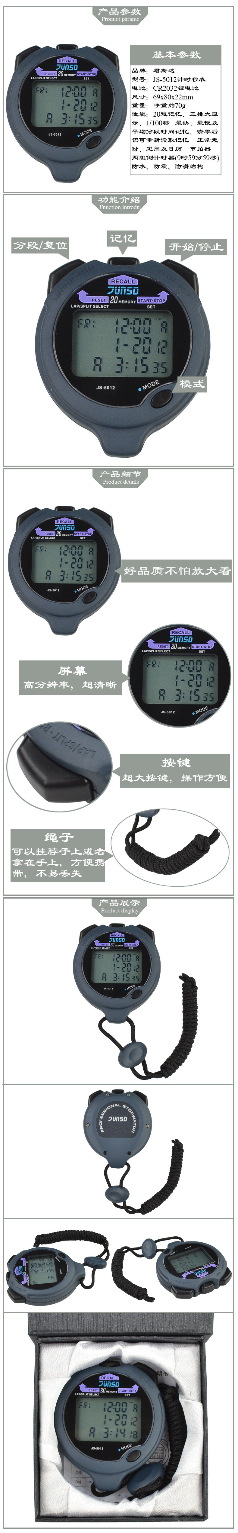 New Grandda 5012 Second Watches 20 Memory Three -Row большой экраны Timer Timer Бесплатная доставка
